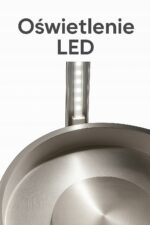 Wykonany jest ze szkła hartowanego i stali nierdzewnej – przez co łatwo utrzymać go w czystości.